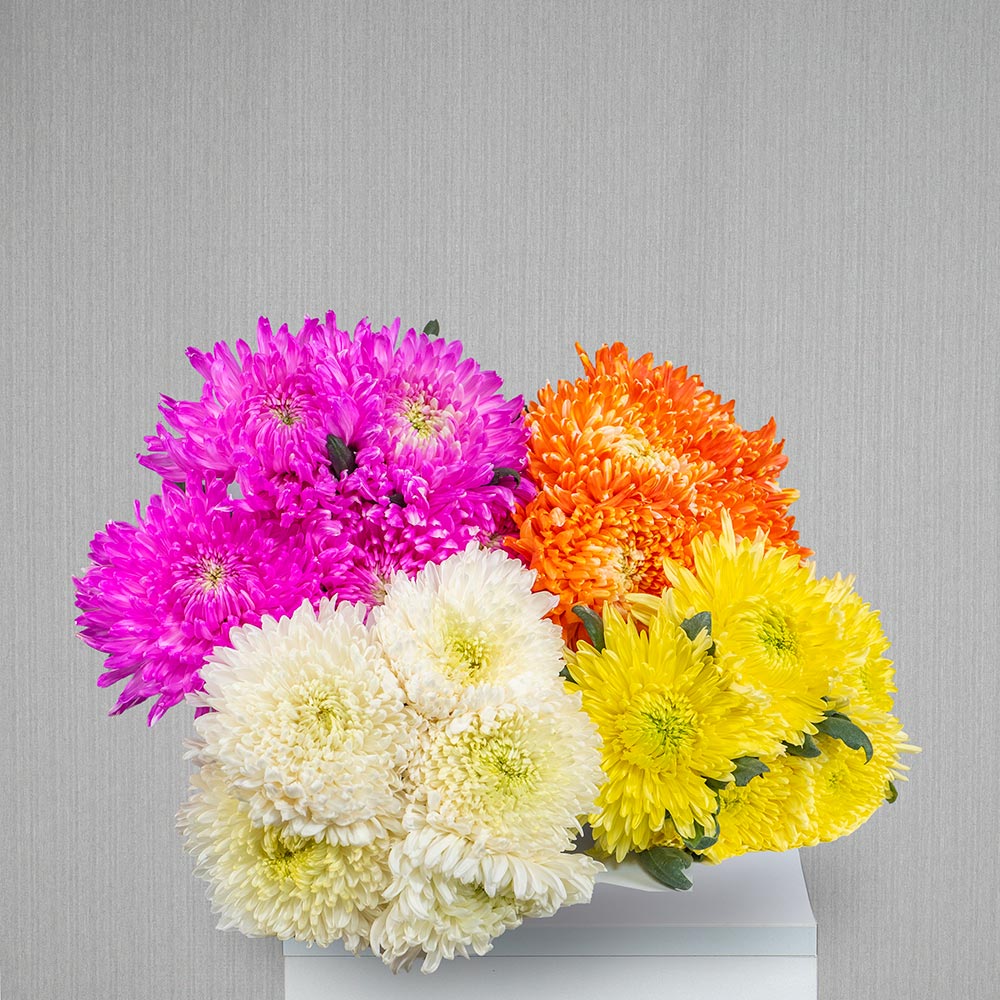 Disbud chrysanthemum, long lasting variety in some beautiful vibrant colours. Premium option pictured.